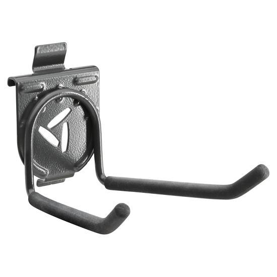 Store garden tools, axes, and hard to hang items with the Gladiator® Wide Hook. This storage hook can hold up to 30 lbs (13.6 kg) and is easily relocated onto different Gladiator® Wall Systems. Vinyl tip padding prevents your items from being scratched or dented while lock tabs keep this hook secured to the wall.