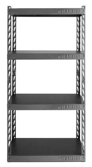 The 30" (76.2 cm) Wide Gladiator® EZ Connect Rack features an innovative click-and-lock system that makes it easy for one person to assemble in minutes. Use it in small spaces to keep items like family games and baking supplies organized.Read More