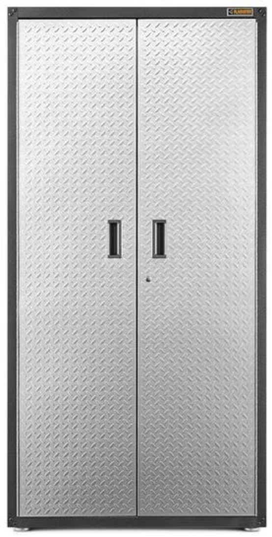 The Gladiator® Ready-to-Assemble Jumbo GearBox stands at six feet tall and two feet deep to easily hold your larger household items. This extra deep cabinet comes equipped with three full-width shelves that provide exceptional space for everything from camping gear to sports equipment. Locking Tread Plate doors with large recessed handles ensure that power tools and sharp equipment are safely stored. An included Wall Bracket Kit makes this storage cabinet easy to reposition on Gladiator® Wall Systems. Not compatible with caster kit.
