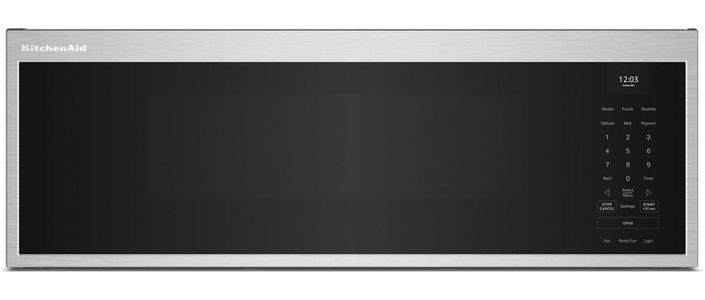 Provides a small, sleek microwave with finishing that blends into cabinetry and strong features that are powerful enough to replace hoods.